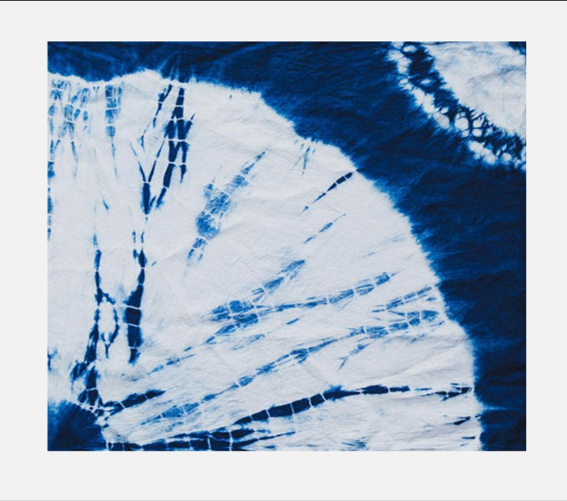 扎染工艺分为扎结和染色两部分。它是通过纱、线、绳等工具,对织物进行扎、缝、缚、缀、夹等多种形式组合后进行染色。 其工艺特点是用线在被印染的织物打绞成结后,再进行印染,然后把打绞成结的线拆除的一种印染技术。它有一百多种变化技法,各有特色。如其中的"卷上绞",晕色丰富,变化自然,趣味无穷。