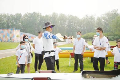 专业的教练为大家讲解皮划艇的操作方法和安全注意事项